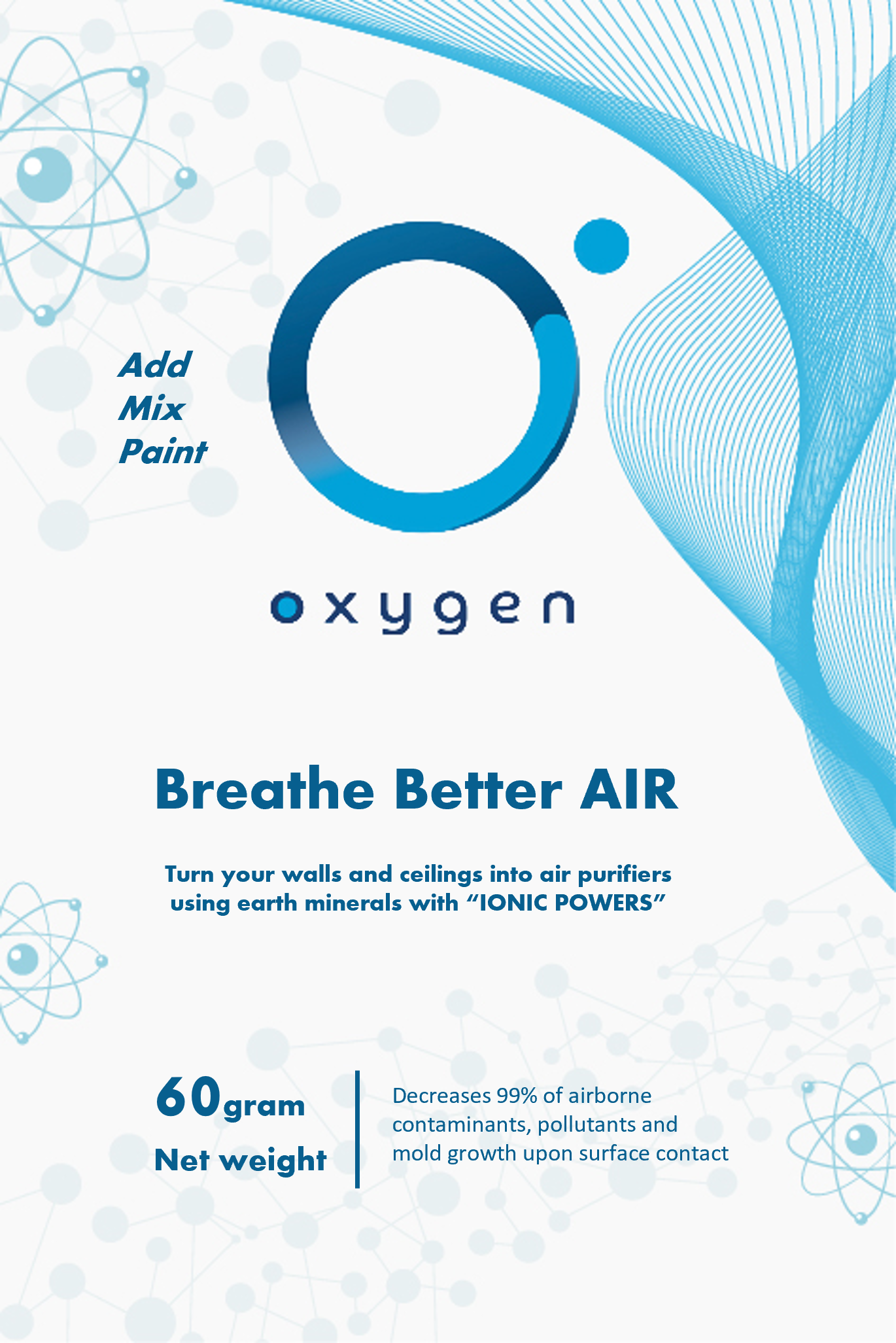 Oxygen is a smart, minerals-based additive scientifically recognized for its ingredients reactive function to actively neutralize harmful surface bacteria, mold and pollutants, promoting a healthier, cleaner environment. By simply adding Oxygen to any acrylic paint and applying it on walls or ceilings, you can transform any room into a healthier and fresher environment.